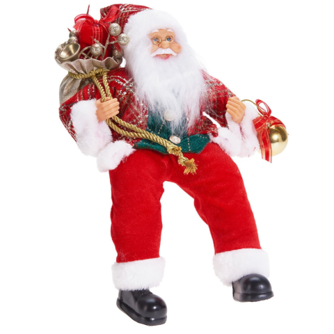 Mikulás ülő zsákkal textil M30cm dekorációs kellék árgrafikon
