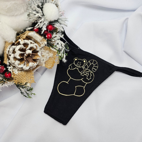 Mikulásos-Karácsonyi TANGA fekete csizmás-macis-cukkorpálcás