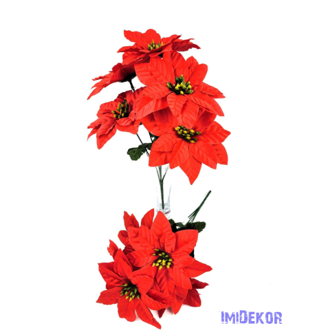 Mikulásvirág 5ágú selyemvirág csokor 33cm - Piros