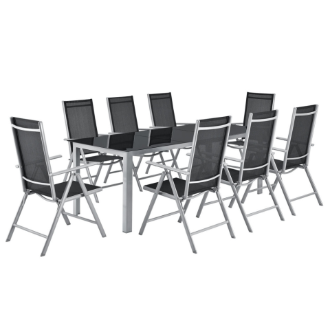 1 kép Milano alumínium kerti bútor garnitúra 8 szék + asztal fekete üveglappal 23713