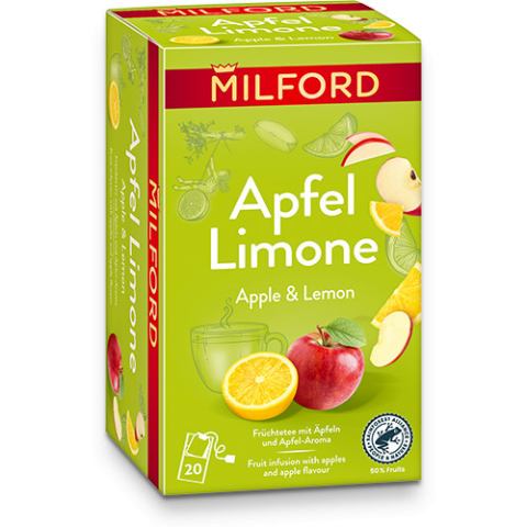 Gyümölcstea almával és alma aromával. A savanyú íz derűssé tesz! Valóban, a MILFORD almás citromos gyümölcsteakeveréke nem is olyan savanyú, sőt a bizsergető citromíz érzete külön lendületet ad a gyümölcsíznek. Így garantáltan biztos, hogy minden cs