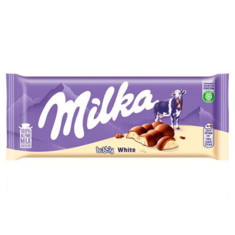 1 kép Milka Bubbly White alpesi tejcsokoládé levegőbuborékos fehércsokoládé töltelékkel 95 g