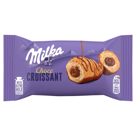 Croissant alpesi tej felhasználásával készült tejcsokoládés töltelékkel16 db/karton Összetevők:Cukor, Búzaliszt, Pálmaolaj, Ivóvíz, Sovány tejpor, Kakaóvaj, Tejzsír, Kakaómassza, Tejsavópor, Glükóz-fruktóz szirup, Emulgeálószerek (zsírsavak mono- és di