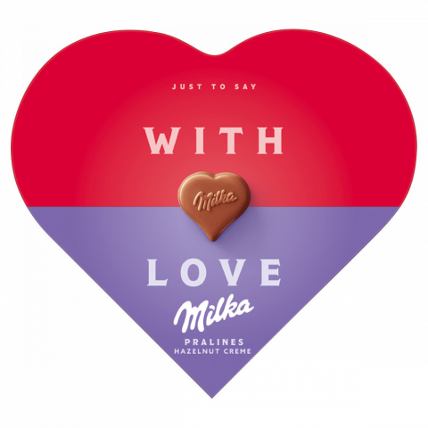 1 kép Milka I love Milka alpesi tejcsokoládé praliné mogyorós krémtöltelékkel 44 g