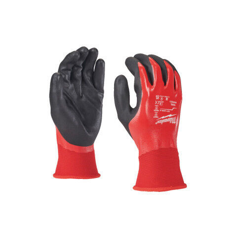 MILWAUKEE Teljesen mártott védőkesztyű - 1/A - S/7 Teljes kéz dupla nitril bevonat, amely megakadályozza a víz és olaj felszívódását. Az első réteg sima nitril az egész kézen, a második réteg mikrovékony hab a tenyéren és a hüvelykujjonKiváló tapadás h