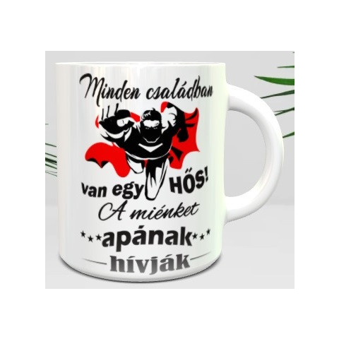 Bögre apáknak. Ha Ti családotokoban is apa a hős akkor válaszd neki szülinapjára ezt a feliratos szuperapa grafikás bögrét. A minta alsó részén kicsit halványabb a nyomat. Siess, mert csak 1db van belőle! Többféle színben, és formában rendelhetsz nálu