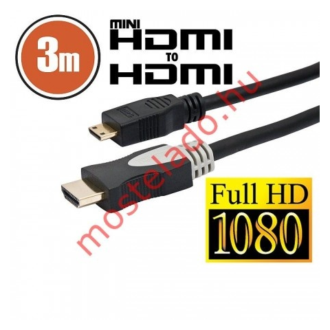 Mini HDMI kábel 3m (20426). Digitális multimédiakábel, ami hang és kép átvitelére is alkalmas, valamint olyan vezérlőjelekére is, amivel a különböző eszközök irányíthatják egymást. A HDMI támogatja a multiple audio formátumokat, a standard sztereótól a mu