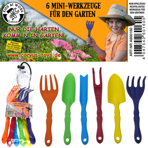 Kerti szerszámok jó minőségű, strapabíró műanyagból. Kerti munkához használható eszközök. A kertben előforduló palántázás, növénygondozás, ültetés során használható, praktikus műanyag szerszámok. Cserepes növények gondozásához használható. 3 éves kortó