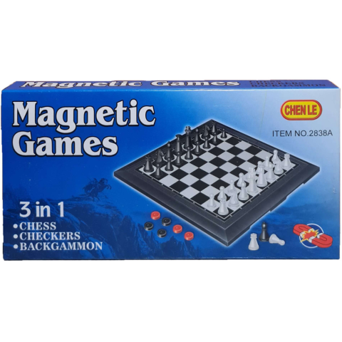 A mini mágneses 3 az 1-ben sakk készlet egy praktikus és kompakt játékeszköz, amely ideális társ a szabadidős tevékenységekhez. Ez a készlet három különböző játékot kínál egyetlen csomagban: sakk, dáma és blackgammon. A készlet mágneses felülete lehetővé