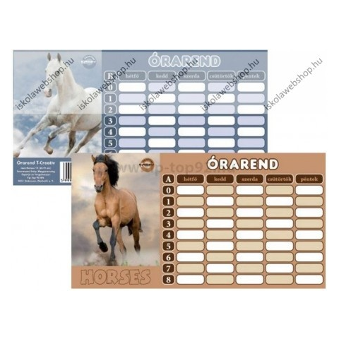 Termékjellemzők: - Mini órarend, amely a tolltartóban elhelyezhető! - Mérete: 15x8 cm. - Csodálatos mintával. - A és B órarend a két oldalon: fehér lovas és barna lovas mintával. - Sorok száma: 9 sor, 0-8 óra számára.