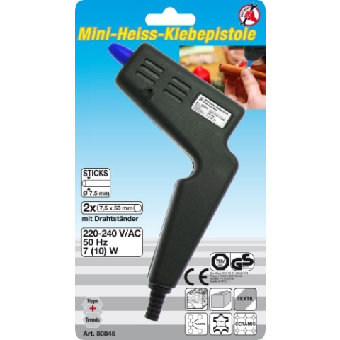 Saját támasszal;7.5 mm átmérőjű ragasztórudakhoz;TÜV / GS minősített.Tartozékok:2 db ragasztórúd, 7.5 X 100 mmTechnikai adatok:Tápfesz0ültség::220 - 240 V / AC 50 HzTeljesítmény:7 W (10 W névleges)