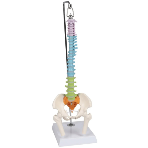 A miniatűr rugalmas emberi gerincoszlop combcsonkkal 5 különféle, eltérő színekkel megkülönböztetett részre oszlik, melyek a következők: 7 nyakcsigolya, 12 mellkasi csigolya, 5 ágyéki csigolya, keresztcsont és farokcsont.