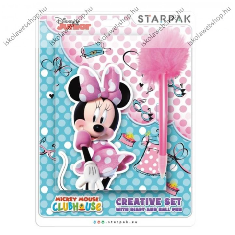 Termékjellemzők: - Gyönyörű Minnie mintás kislányos szett. - Tartalma: 1 db lakattal zárható napló, 1 db bóbitás golyóstoll.