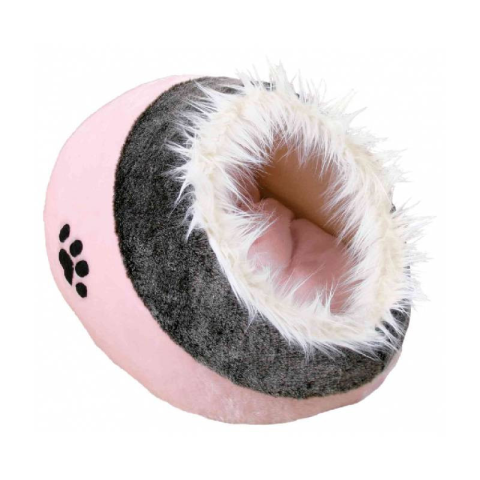 Minou Barlang rózsaszín/szürke 35x26x41cm Puha plüss fekhely kis kutyák vagy macskák részére. Megfordítható párna Csúszásmentes az alja