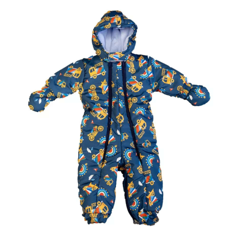 Mintás vízlepergetős, kapucnis bélelt overál kesztyűvel (92-98) - Jármű rugdalózó 1 kép