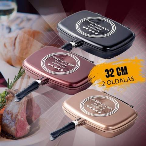 MISCHLER COOK 32CM KÉTOLDALAS SERPENYŐ MC-DADG32 edény 1 kép