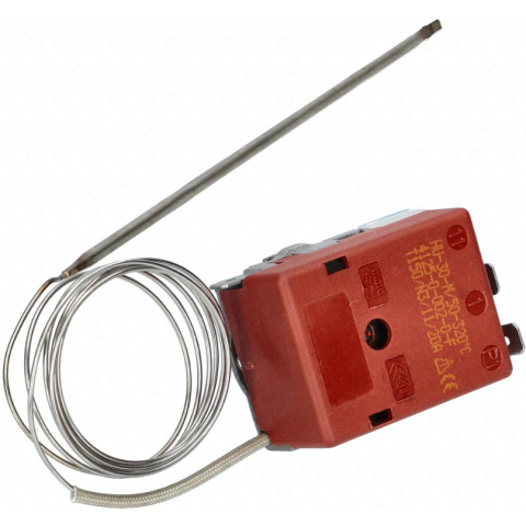 MMG - Hőfokszabályzó 1 fázis 50-320C° Régebbi azonosító lehetett: 5271-0-310-1, 4125-0-002-0, 412500020, 527103101, 9990002001517 Kapilláris cső hossz: 935mm Kivezetések száma:3 Szonda hosszúság:169mm Tengely átmérő: 6mm Tengely hosszúság:26mm