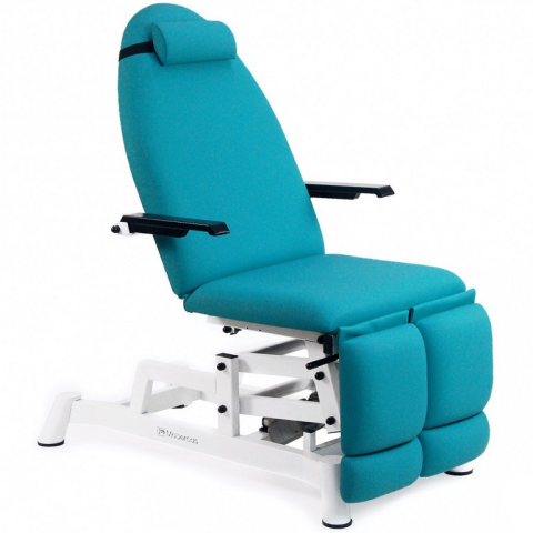A csúcsminőségű fém szerkezettel gyártott, professzionális háromrészes Mobercas SE-1130-B-POD pedikűrös kezelőágy kézi vezérlő segítségével elektromosan állítható magassággal rendelkezik. A hát- és lábtámla mindkét irányban állítható, amely nagyfokú kényelmet és külön