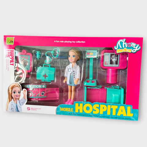 ndulhat a vizit! A mobil kórházas játékszett tökéletes választás minden kis orvos, nővér vagy egészségügyi segítő számára. A szett egy mozgatható kórházi egység, babával, röntgengéppel és rengeteg kiegészítővel, hogy a gyerekek eljátszhassák a gyógyítás