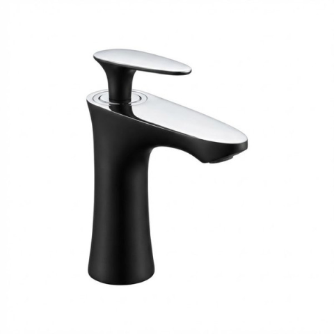 Modern Elegancia – Matt Fekete és Króm Mosdócsaptelep CS104Ez a különleges, kéttónusú mosdócsaptelep a modern luxust és a kifinomult stílust hozza el fürdőszobájába. Az íves, organikus formavilág és a kontrasztos felületkezelés tökéletessé teszi bármely minimalista vagy elegáns mosdókagyló kiegészítőjeként.Főbb jellemzők:Egyedi színkombináció: A csaptelep teste selymes matt fekete bevonatot kapott, míg a kezelőkar és a kifolyó felső része magasfényű