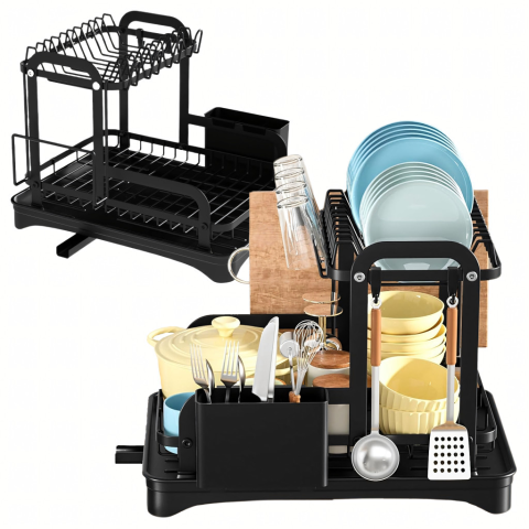 Teljes Modern kétszintes edényszárító csepegtető tálcával, fekete termékleírás