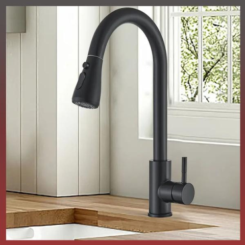 Modern magas ívű fekete mosogató csaptelep zuhanyfejes WD1247094Vízszűrő kimenetSzín: matt feketeNagyon könnyen felszerelhető .Felszerelés a pultra vagy a mosogatóra.Kihúzható zuhanyfej