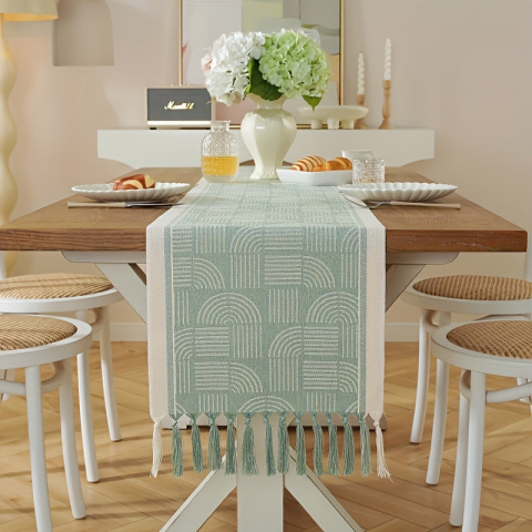 Teljes Modern Norvég stílusú Kockás Asztalfutó Kézzel Szőtt Bojtakkal termékleírás