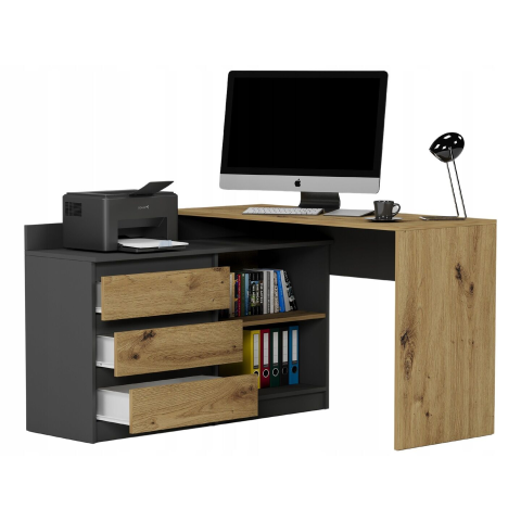 Modern sarok íróasztal komóddal - Artisan tölgy és antracit színben 💻📚 Ez a stílusos sarok íróasztal a MODERN kollekcióból tökéletes választás azok számára, akik értékelik a modern stílust és az eleganciát. Ideális megoldás stúdiókba, irodákba vagy...