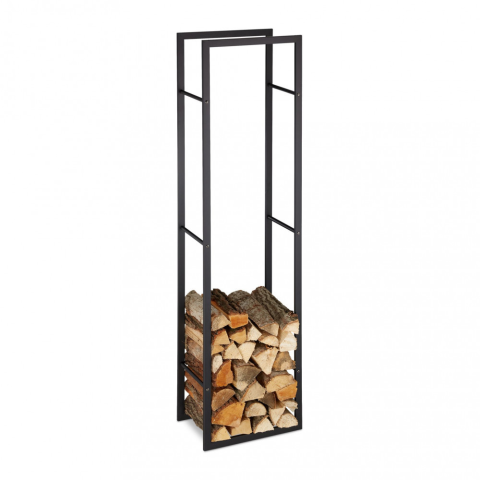 A magas tűzifapolc rengeteg helyet kínál a rönkök egymásra rakására. Így zavartalanul élvezheti a téli órákat a kandalló előtt, és mindig van kéznél új tűzifa. Dekoratív fekete megjelenésének köszönhetően a keskeny polc tökéletesen illeszkedik a kandalló