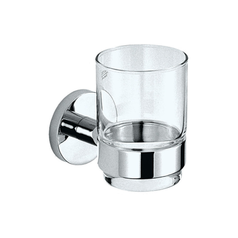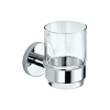 Mofém Fiesta króm pohártartó üvegpohárral. Sárgaréz alapanyag, rögzítő készlettel, egyszerű fali szerelés csavarozással.