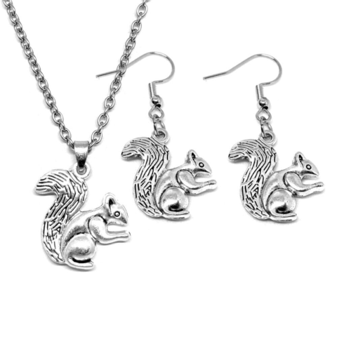 Mókusos medál ezüst színű nyaklánccal + fülbevaló szett
