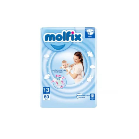 Molfix pelenka széles, rugalmas pocakkövető tépőzárrésszel, nedvességjelző csíkkal, egyedülálló 3D tehcnológiával a még nagyobb kényelemértl: a Molfix pelenka méltán egyik legnépszerűbb termék üzletünkben! Kiszerelés: 3 csomag/gyűjtő. Molfix J