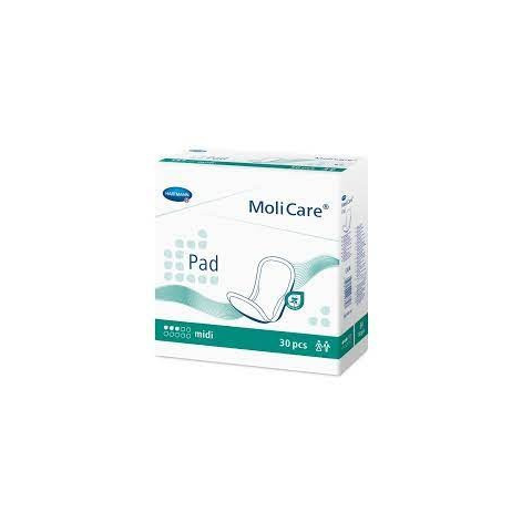 Molicare Pad midi 3 csepp (451ml) inkontinecia betét - 30 db Molicare Pad midi 3 csepp (451ml) inkontinecia betét - 30 db Elsősorban nők számára tervezett, anatómiailag formázott inkontinencia betét szuperabszorbens polimert tartalmazó fokozott nedvsz