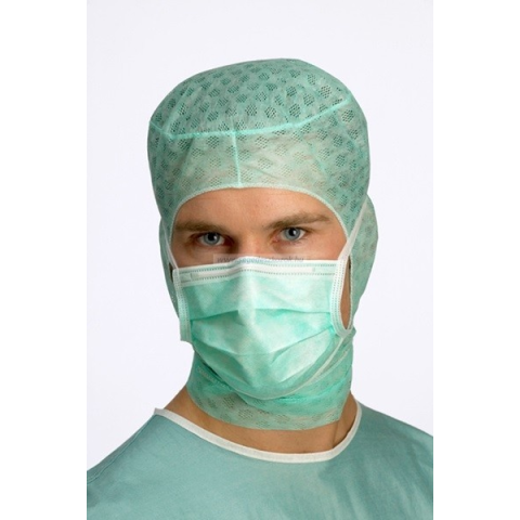 Sebészi operációs maszk, mérete minimum: 18 x 9,5 cm. Nagy baktériumszűrő képességű (baktériumszűrési hatékonysága minimum: => 98%), besorolása: TYPE II, anyaga 62g/m2 nem-szőtt polypropilén, nem szöszölődik. A termék megfelel az EN14683 standardban megha