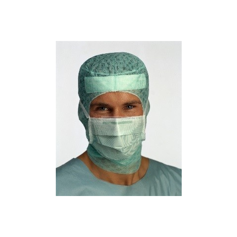 Sebészi operációs maszk, mérete minimum: 18 x 9,0 cm. Nagy baktériumszűrő képességű (baktériumszűrési hatékonysága minimum: => 98%), besorolása: TYPE II, anyaga 50g/m2 nem-szőtt polypropilén, nem szöszölődik. A termék megfelel az EN14683 standardban megh