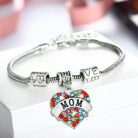 Mom karkötő, színes szív függővel karkötő 1 kép