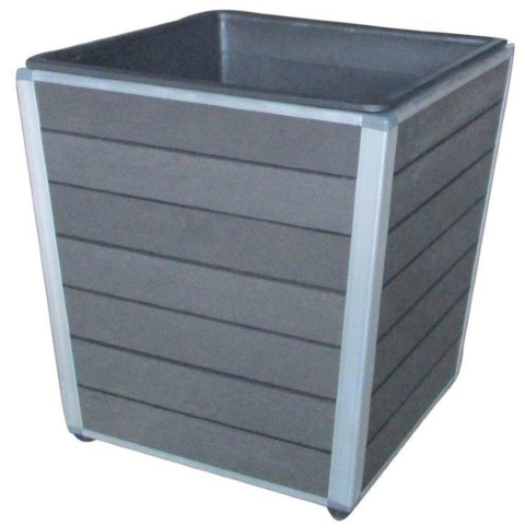 A Monaco virágcserép WPC-ből készült, és szürke alumínium vázzal látták el. A virágtartó vízzáró műanyag betéttel rendelkezik.
