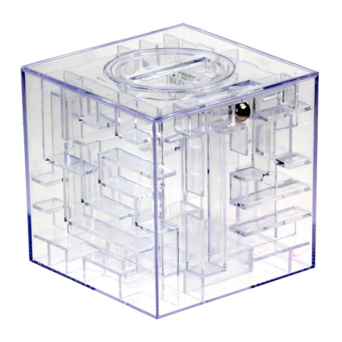 Ezért a pénzért meg kell küzdeni. Kihívást keresőknek kimondottan ajánlott. Kiváló ajándék. A labirintus nyílásán helyezd be a pénzt, amit úgy lehet kivenni, ha a kis golyót végigvezeti az útvesztőben. A belső rekeszben még egy kis ajándékot is elrejthets