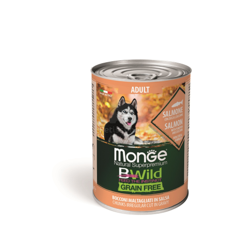 Teljes Monge BWild Grain Free Adult kutyakonzerv - lazac sütőtökkel és cukkinivel 400 g termékleírás