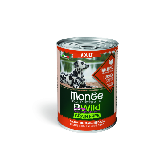 Monge BWild Grain Free Adult kutyakonzerv - pulyka sütőtökkel és cukkinivel 400 g kutyaeledel termékleírás