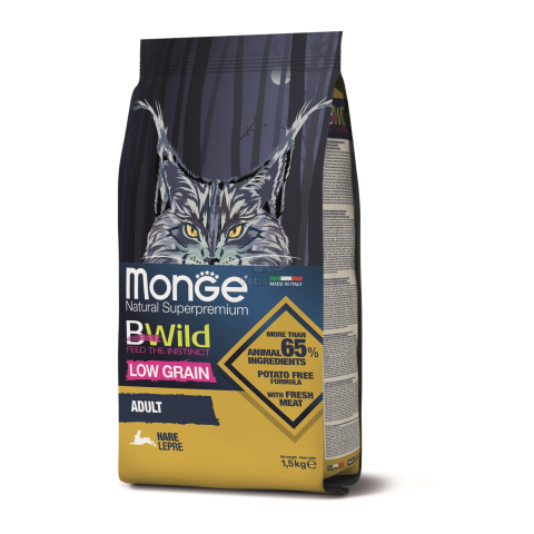 Monge BWild Low Grain Adult száraz macskatáp - vadnyúl 1,5 kg macskaeledel termékleírás