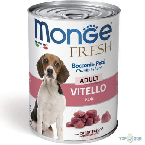 Monge Dog 400gr Fresh Chunk in Loaf Borjú kutyaeledel termékleírás