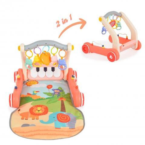 MONI MUSIC WALKER 2in1 járássegítő+játszószőnyeg PINK lábbal hajtható járgány árgrafikon