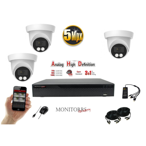 1 kép Monitorrs Security - AHD dóm kamerarendszer 3 kamerával 5 Mpix - 6197K3