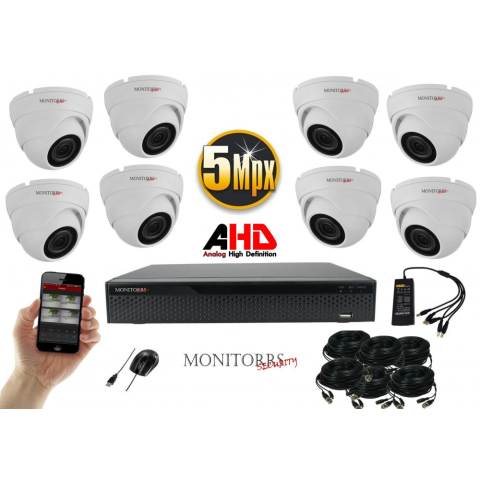 1 kép Monitorrs Security - AHD Dóm kamerarendszer 8 kamerával 5 Mpix - 6043K8