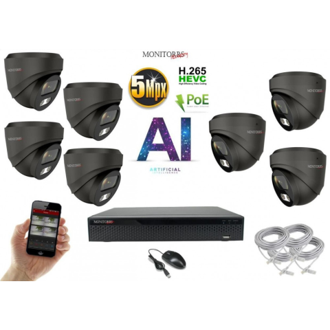 1 kép Monitorrs Security - AI IP Dóm kamerarendszer 7 kamerával 5 Mpix - 6371K7