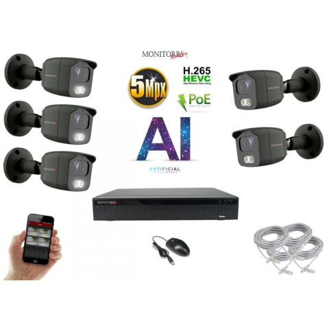 1 kép Monitorrs Security - AI IP kamerarendszer 5 kamerával 5 Mpix GT - 6373K5