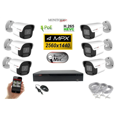 1 kép Monitorrs Security - IP kamerarendszer 6 kamerával 4 Mpix - 6024K6