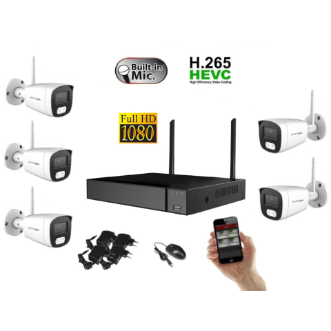 Vezeték nélküli Wifi kamerarendszer 5 kamerával, 2 Mpix felbontással - 1920 x 1080 A Wifi jel hatótávolságát nagyban befolyásolják az akadályok, amelyeken keresztül ez a jel a normál környezetben 25–30 m. A kamerák fém, vízálló (IP 67) vandálbiztos kivit