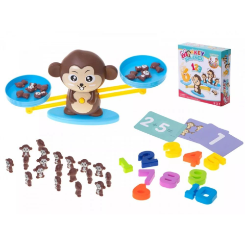 Hogyan tanítsuk a számtant szórakoztatóan és egyszerűen? Ez a majom a tökéletes választás! A mérleg egyik táljára egyszerűen egy számot, a másikra pedig a megfelelő számú majmot kell tenni.
